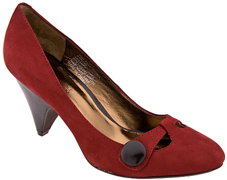 This pump from Kenneth Cole Reaction is a charming look for the season. Set in a suede or leather upper accented with decorative buttons enhance the look. Slightly cushioned footbed for added comfort. Covered pyramid heel rises to 2 3/4" for a sleek look.