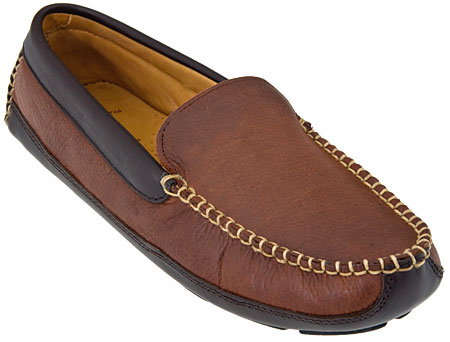 Comfortable handsewn moccasin construction Uppers crafted of waxy, pebble leather Fully lined in soft leather for relaxed comfort Comfort cushion insole heel to toe with perfed and padded arch support Leather bottom accents a skid-resistant rubber driver outsole for sporty indoor/outdoor wear Care: Clean with a damp cloth. May be treated for stain and water-resistance.