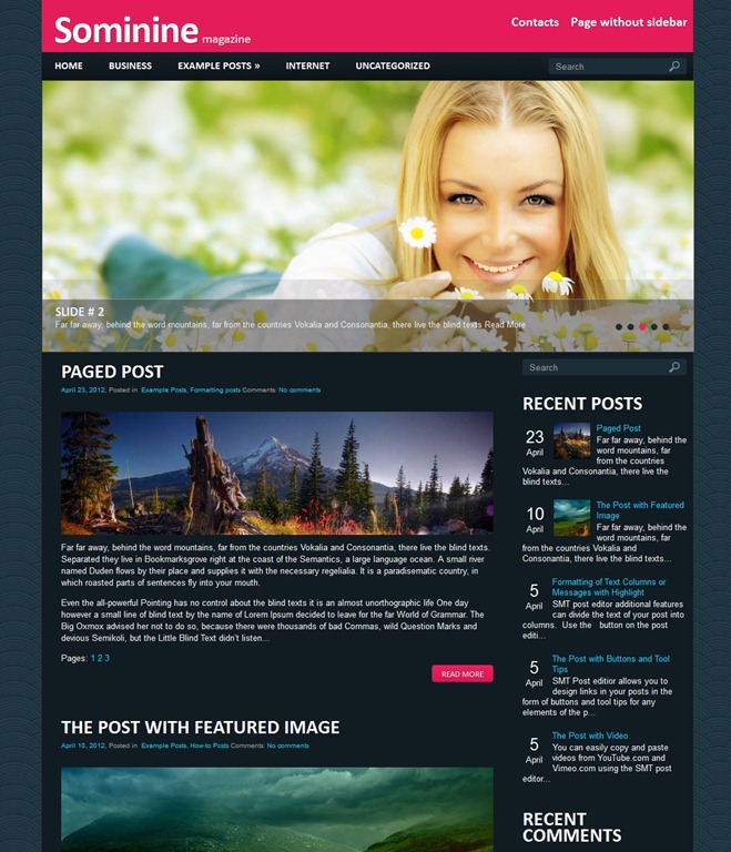 Sominine isa free WordPress theme for personal web pages. This is a theme with lots of features like custom widgets, feedback form, slider, video supporting and many others.