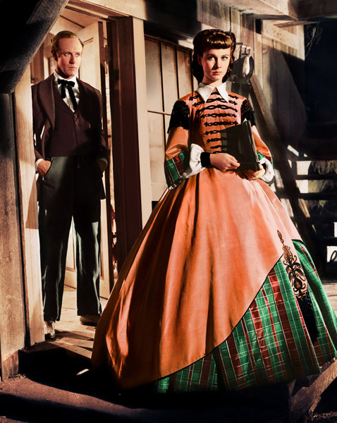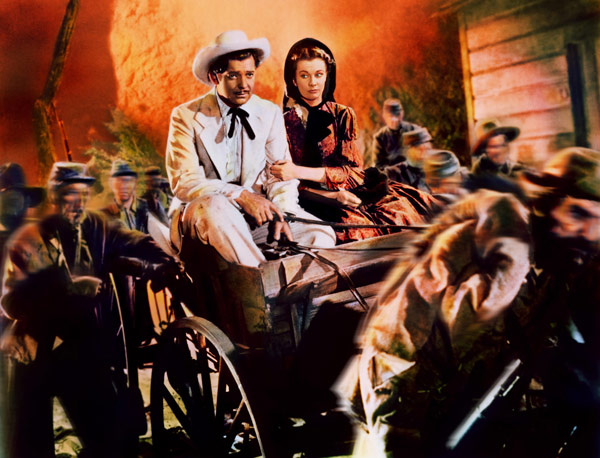 What most surprised me, though, was the awareness of how the film’s color balance is adjusted to produce specific effects. Many scenes have an appropriately warm, “burnished” coloration that /does not/ carry over to the scene’s subtle colors. For example, at the fund-raising bazaar, there’s a bottle of pastel-colored candies (which you’ll probably never notice in the SD edition) that retain their correct colors, “unromantized” by the rest of the image’s warmth. Similarly, in the scene outside the hospital where Belle Watling makes a donation, her costume is vividly colored (there’s no question about her profession!), even though everything else is drab.