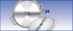 Code markings on pans and lids makes for easy selection of correct size lid for each pan. The domed shape of the lids fit securely to retain moisture through self-basting. This prevents loss of flavor and vitamins and reduces cooking time. |